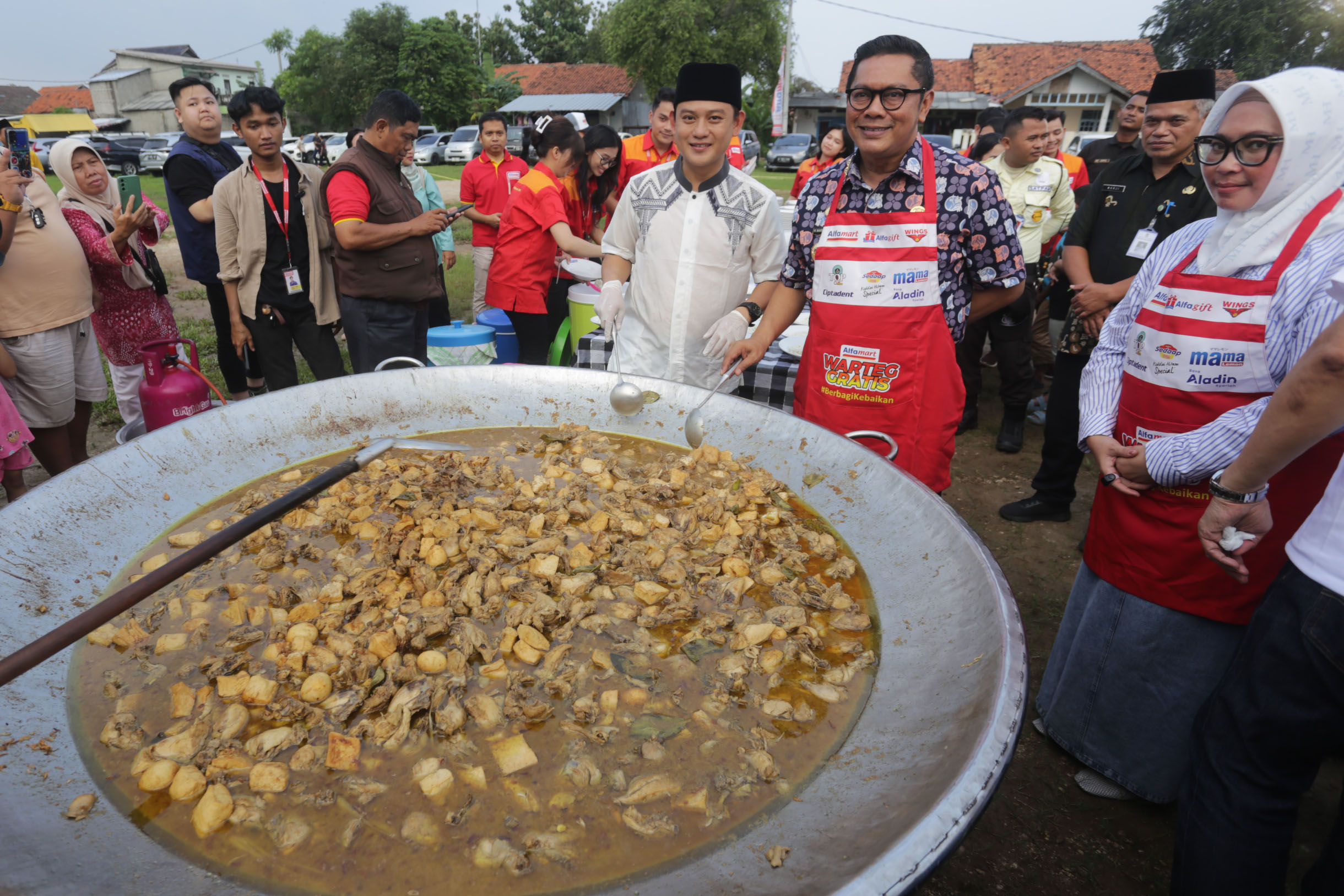 HARIANRAKYAT.ID- Wakil Wali Kota Tangerang, H. Maryono Hasan, berkesempatan masak besar bersama salah satu influencer kuliner ternama, Bobon Santoso, untuk kemudian dibagikan kepada masyarakat Kelurahan Panunggangan Utara, Kecamatan Pinang, yang memadati Lapangan Bola Blok Mede, tempat berlangsungnya acara.